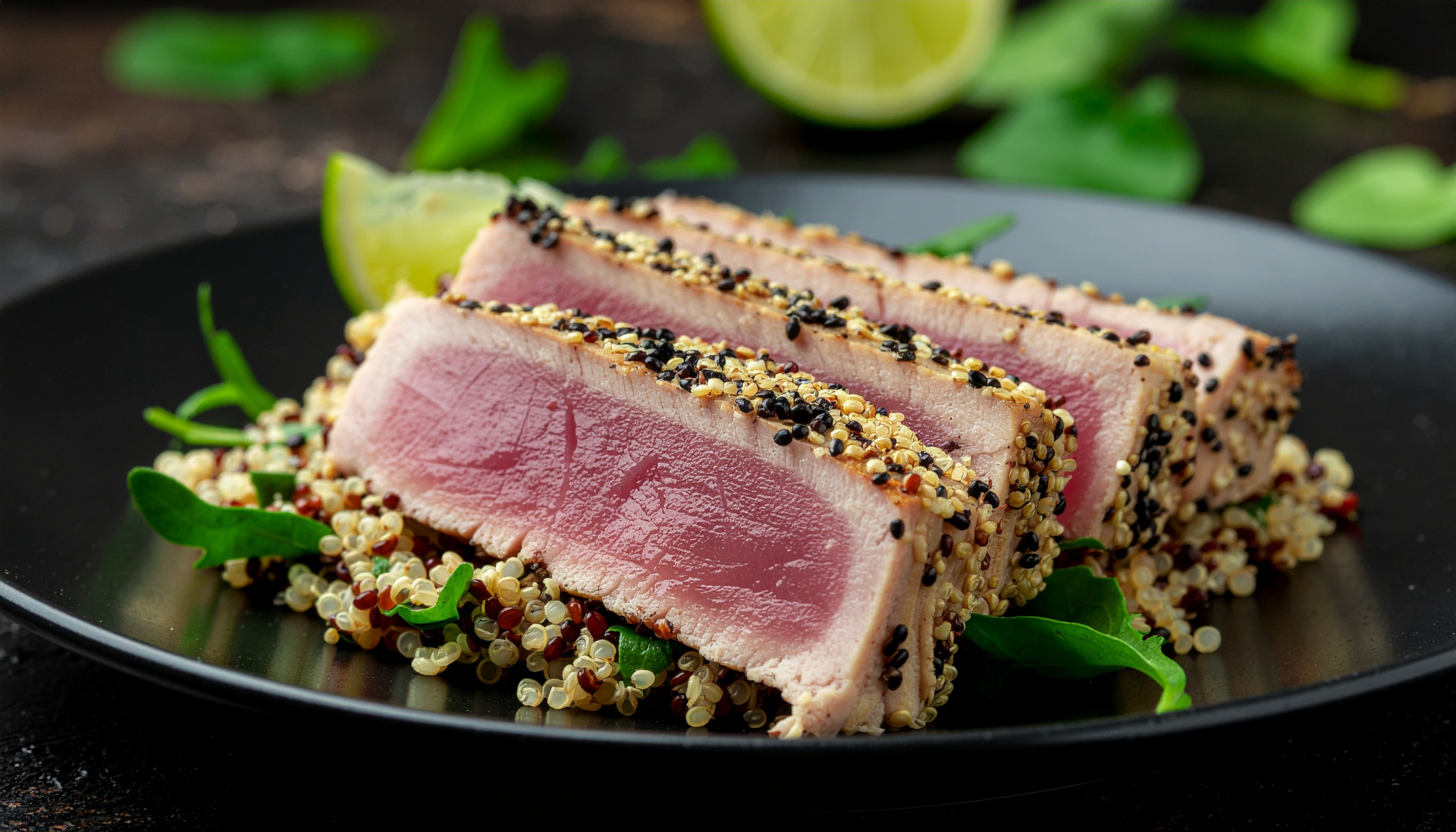 - Plate the herb quinoa as your base, then slice the seared tuna against the grain.