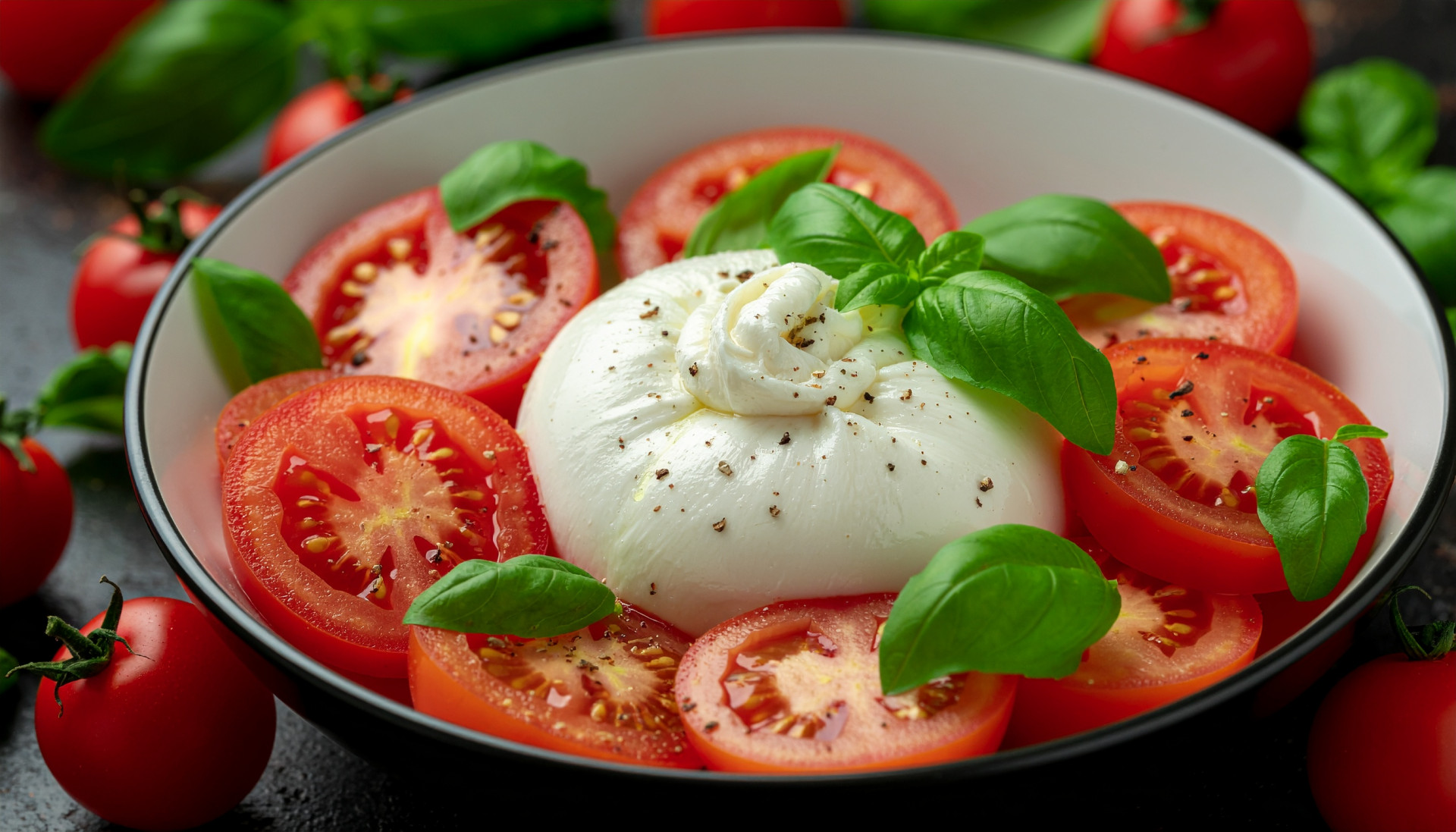 - Serve immediately while the burrata is fresh and the tomatoes are at room temperature.