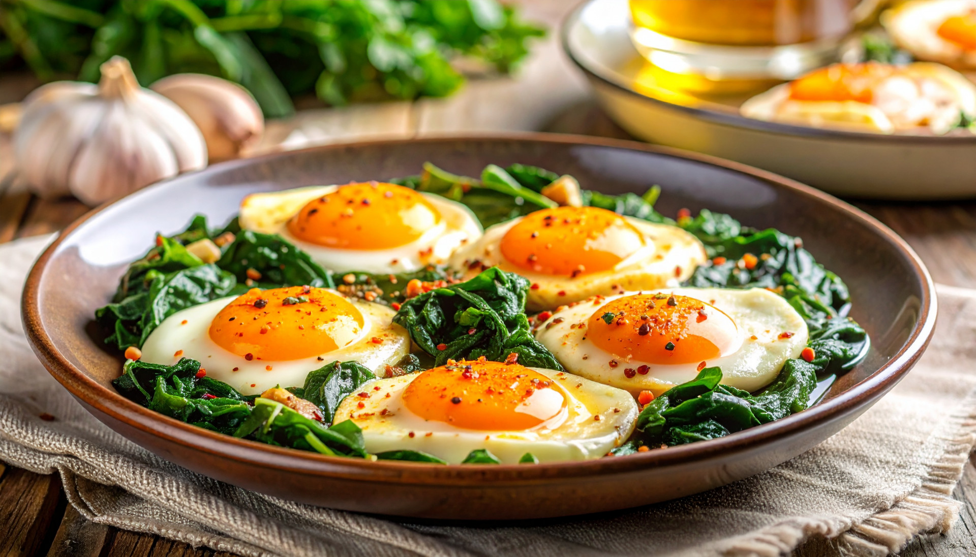 Start your week with café-level elegance. These eggs are cooked slowly until custardy, then folded into garlicky spinach and finished with a generous drizzle of olive oil. The result is rich, savory, and deeply grounding—the kind of breakfast you’d linger over with a book.
