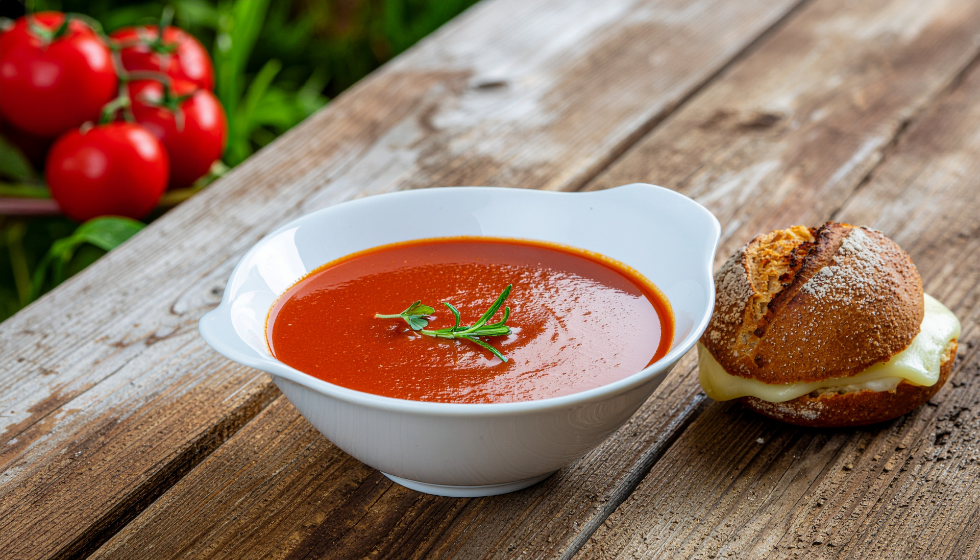 - Serve the warm roasted red pepper soup alongside the melty grilled cheese sandwich.