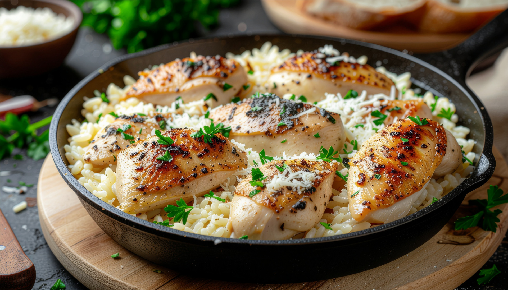 Creamy Garlic Parmesan Chicken Orzo Skillet