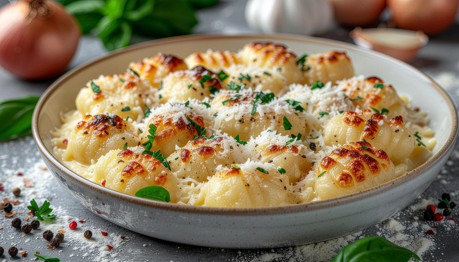 - In a separate bowl, mix tomato sauce, cream, and minced garlic to create the creamy tomato sauce.