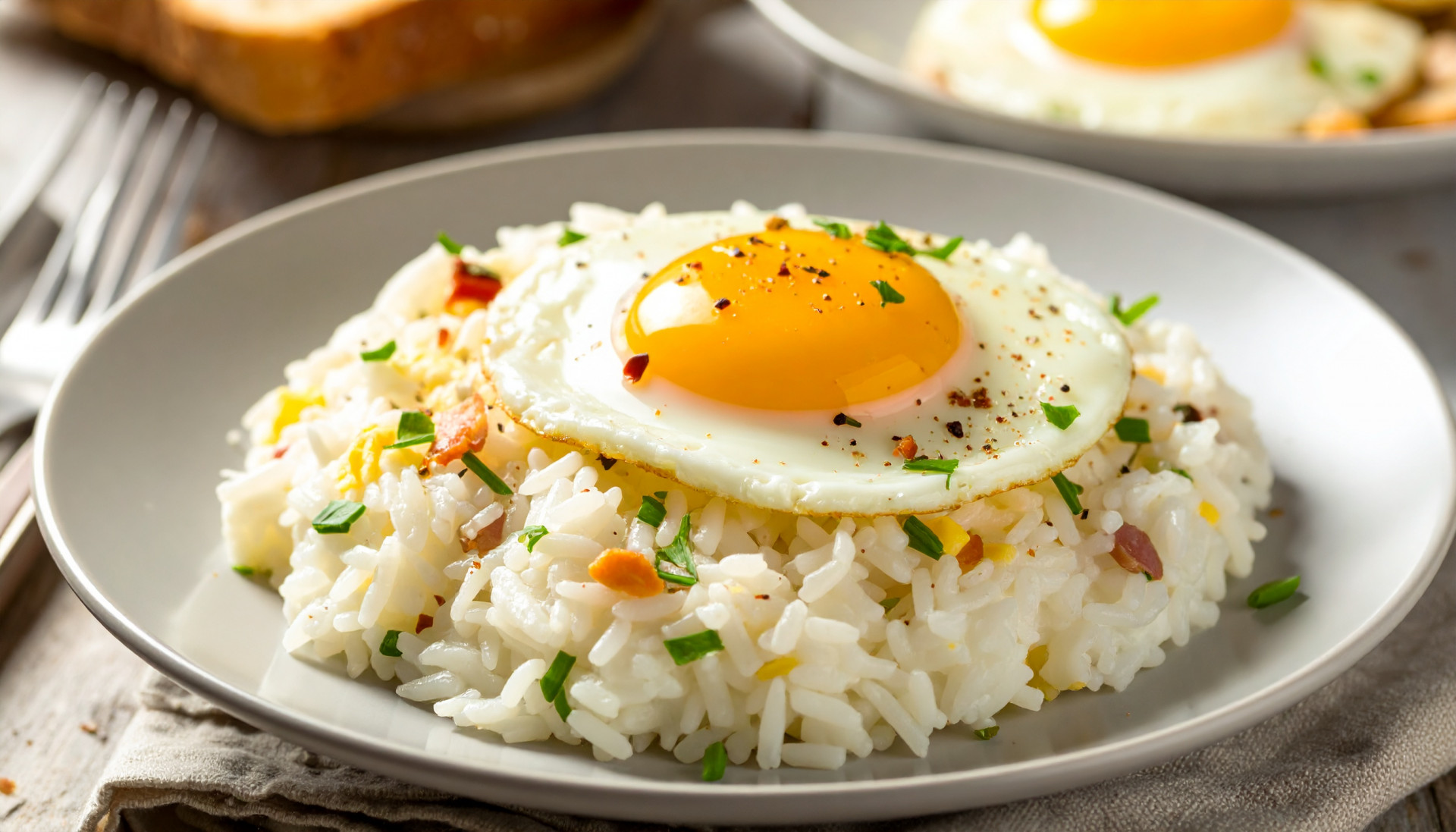 - Spoon the creamy rice into a bowl. Top with the fried egg. Break the yolk and let it run into the rice.
