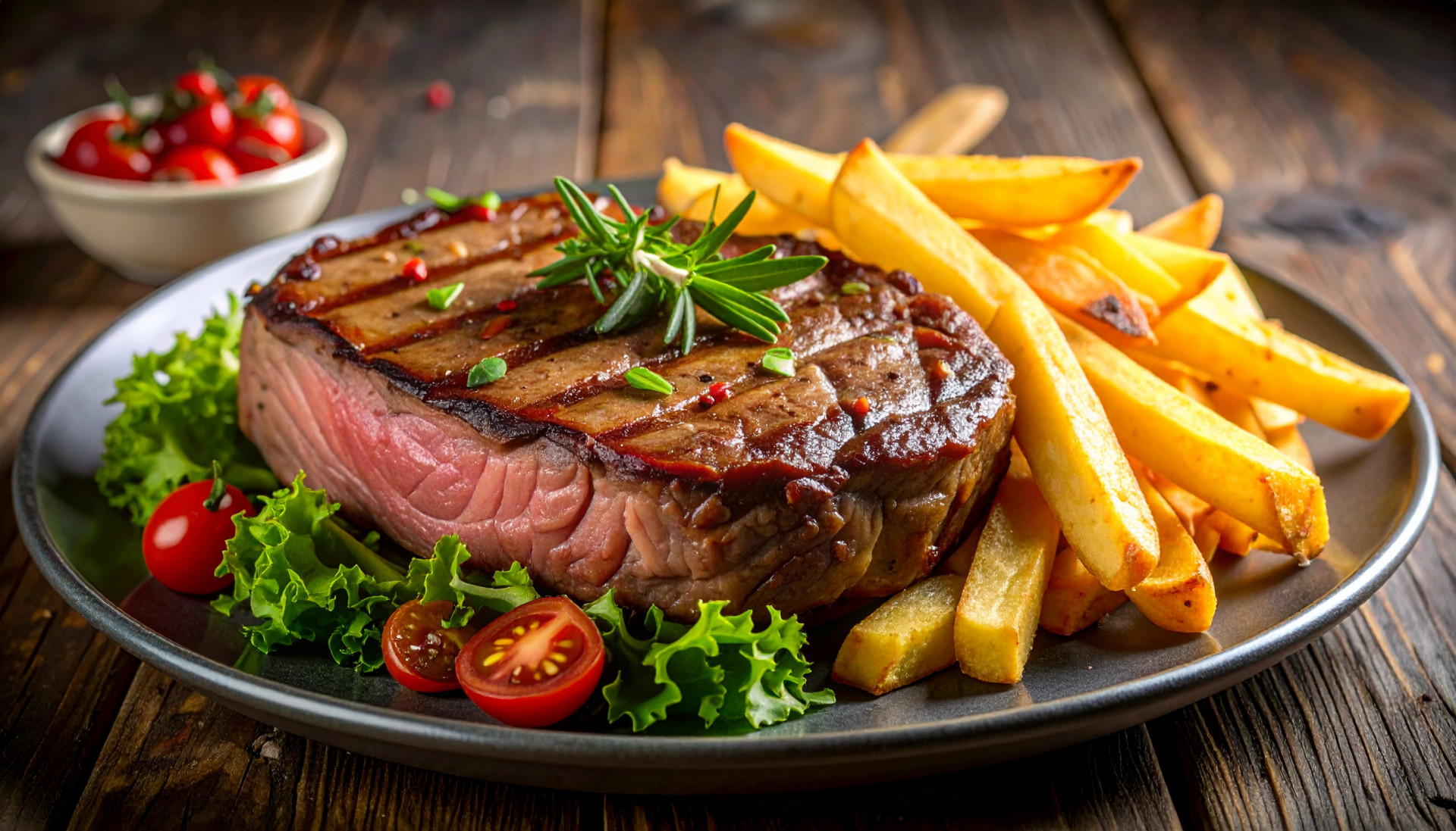 - Plate the sliced steak, a small portion of crispy potatoes, and the green salad. Serve with Dijon mustard on the side.