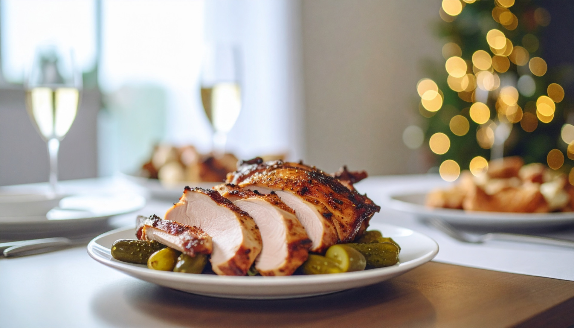 - Eat slowly, alternating a slice of chicken with a bite of cornichon, occasionally dipping in the mustard.