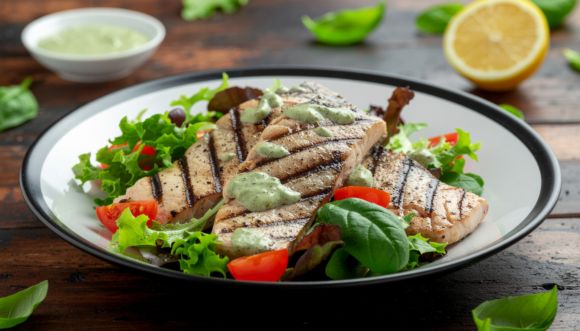 Grilled Wild Salmon Salad with Matcha Vinaigrette