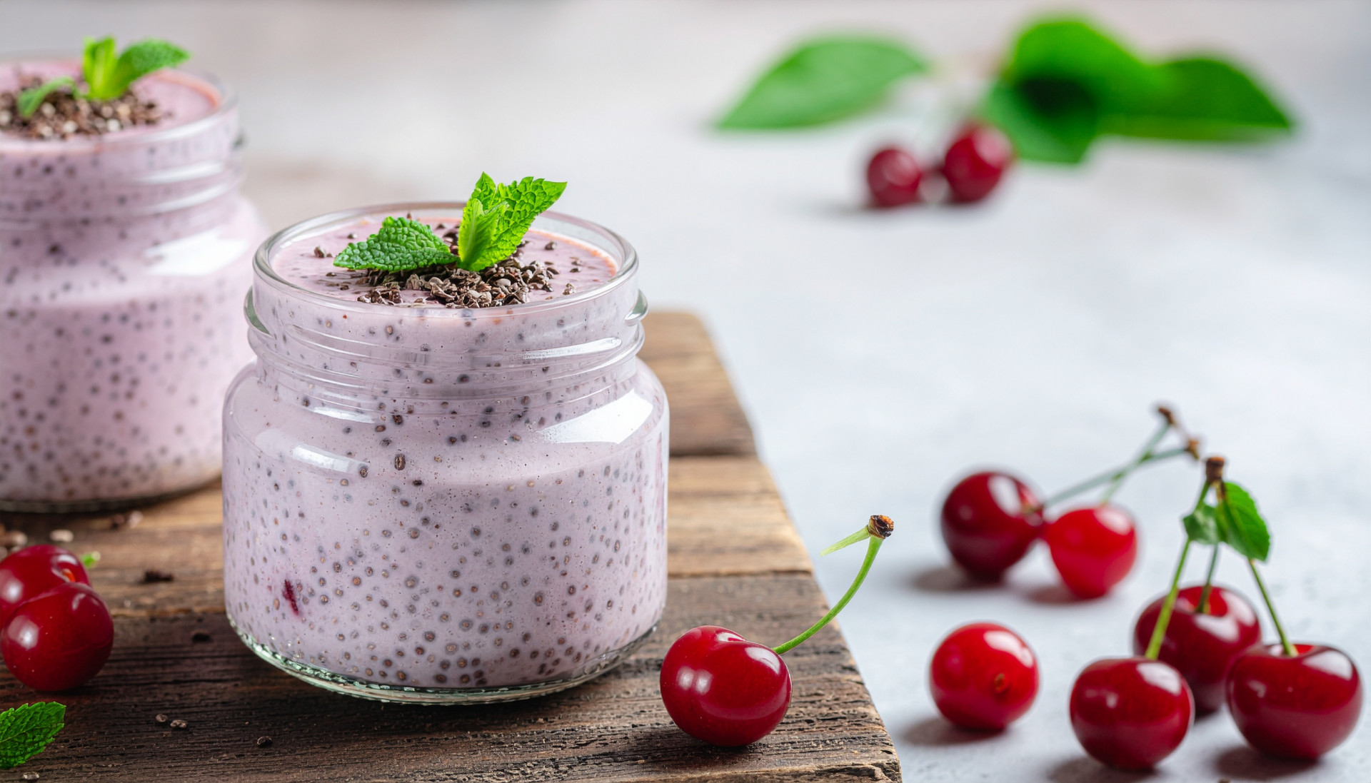 Chia Pudding with Cacao Nibs and Fresh Cherries
