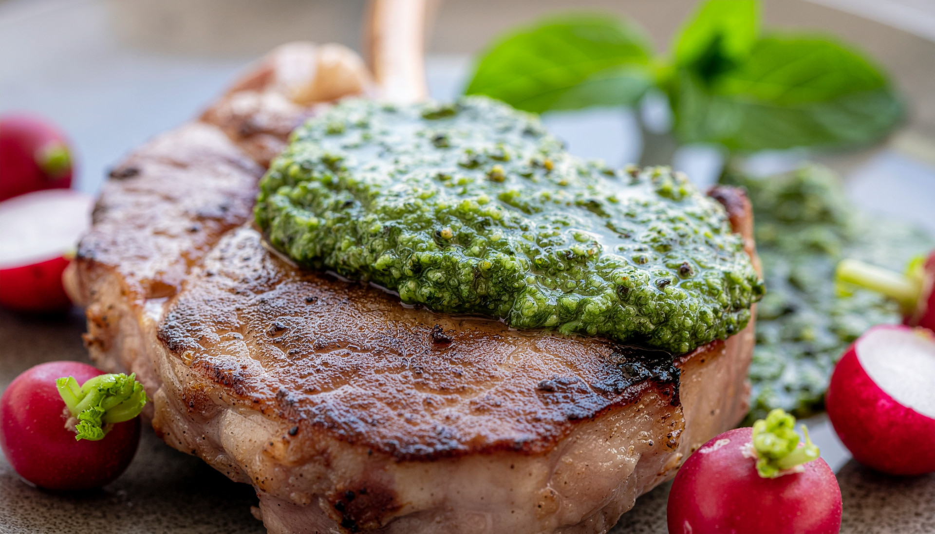 - Heat a skillet over medium-high heat and add the pork medallions, herb-crust side down first. Cook for 4-5 minutes until a golden crust forms.