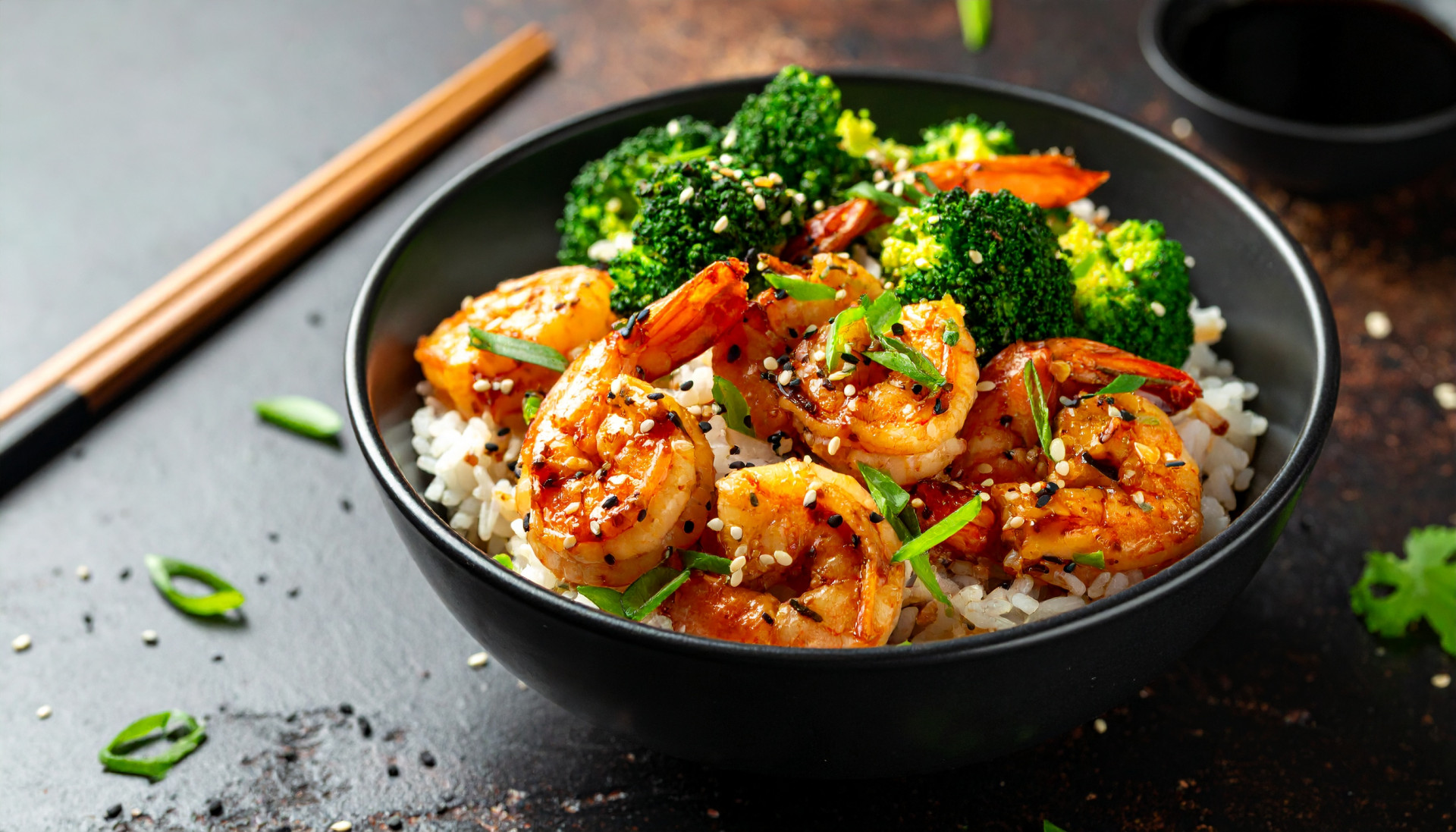 - To serve, divide the rice between bowls, top with broccoli and garlic shrimp. Sprinkle with sesame seeds if desired. Serve hot.