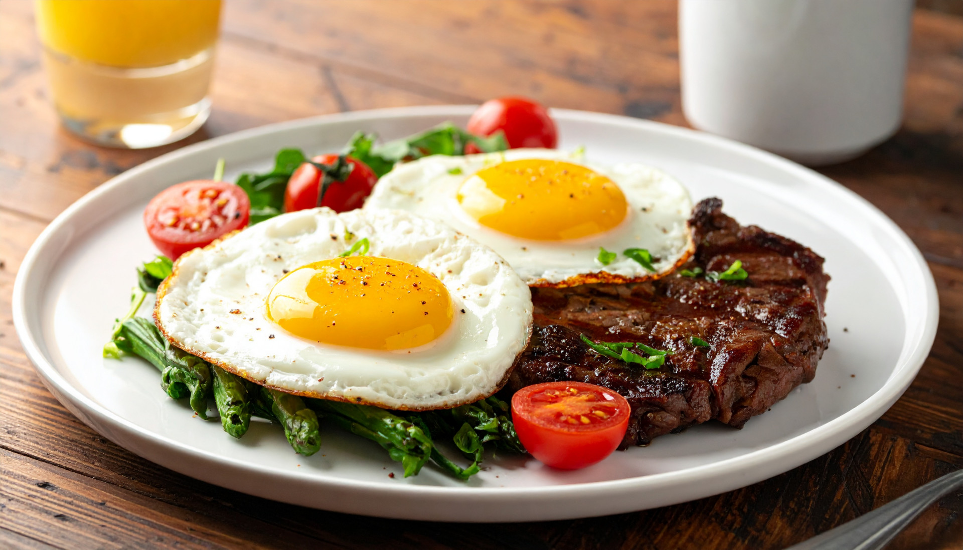 - In a separate non‑stick skillet, cook the eggs to your liking: sunny‑side up (2‑3 minutes covered), over easy, or scrambled. A runny yolk adds a luxurious sauce to the steak.