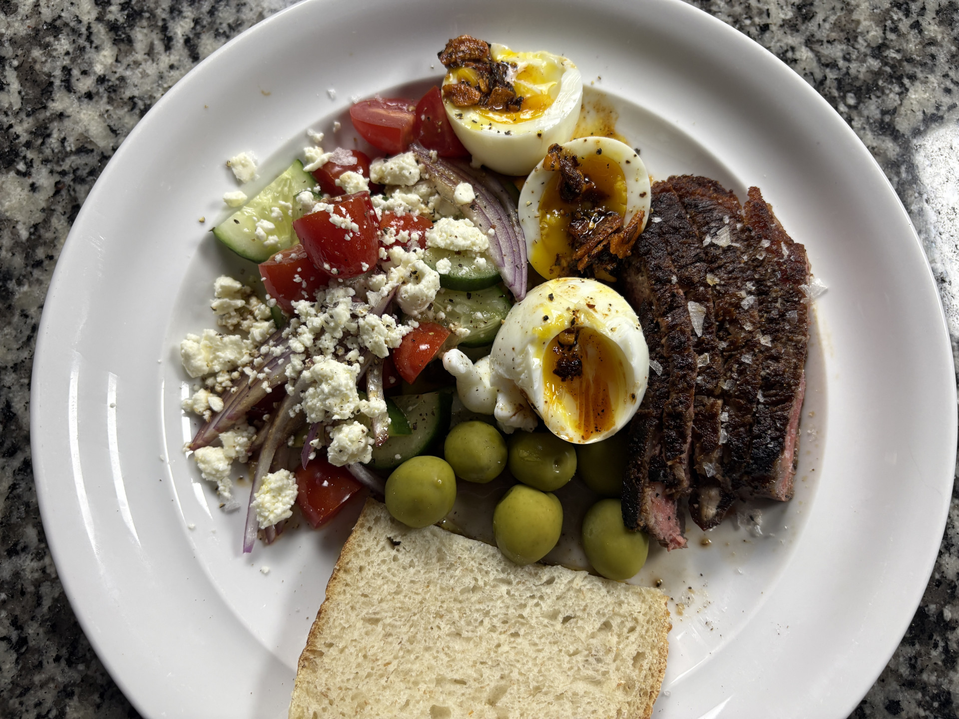 - Hard-boil the eggs, then roughly chop or mash them over the cucumbers.