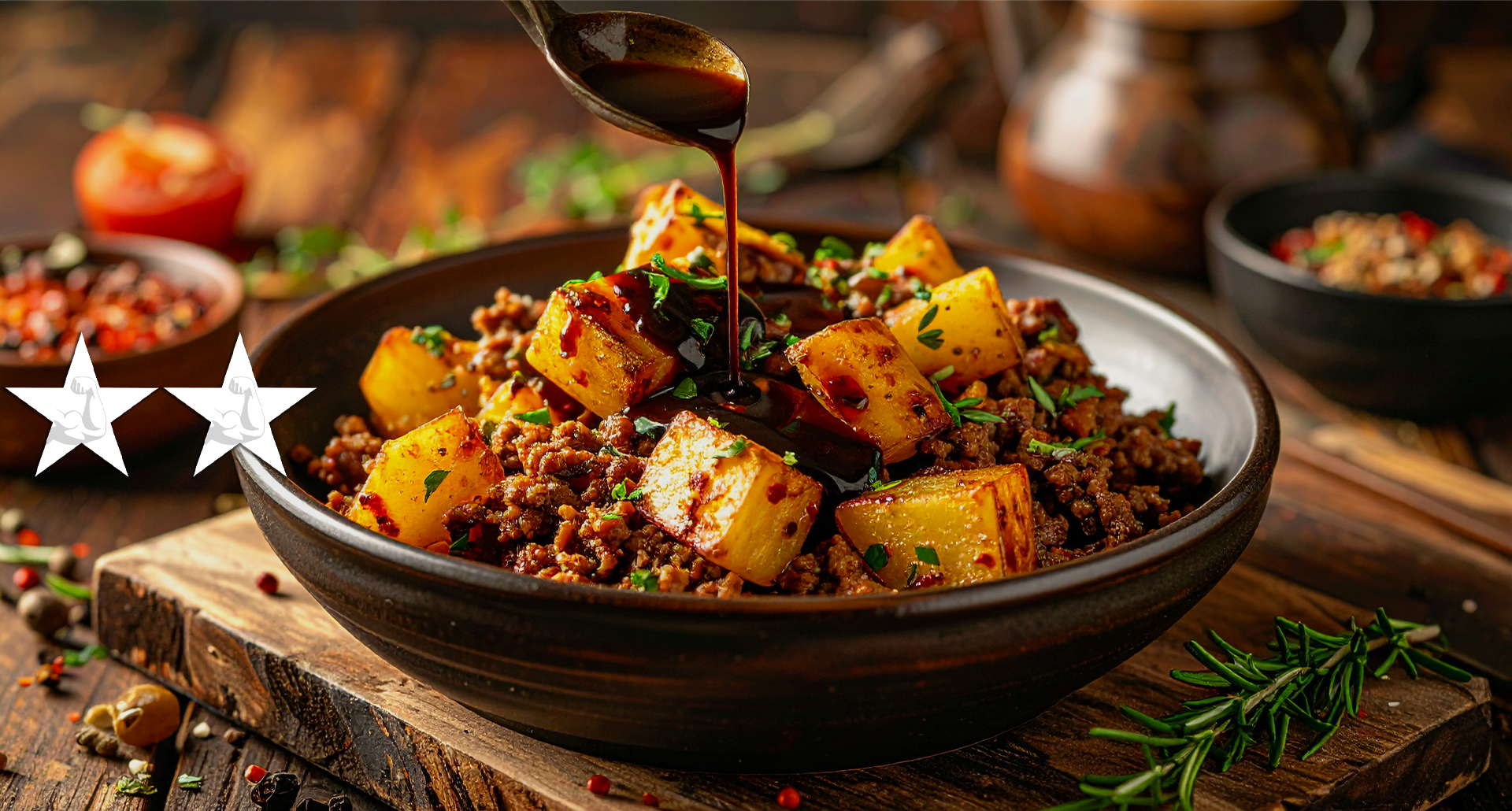 - In the same pan, melt the butter and add salt, pepper, red pepper, paprika, and oregano. Stir to toast, then toss in the onion and sauté for about 4 minutes. Add the garlic and cook for another 30 seconds.