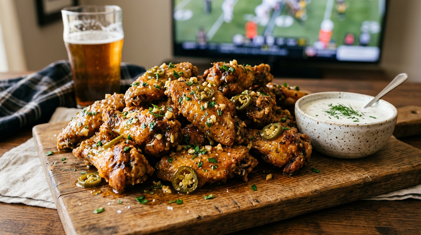 Lemon Pepper Chicken Wings with Garlic Jalapeno Sauce